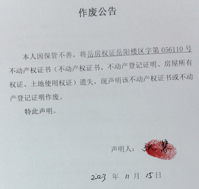 作废公告(张慧)