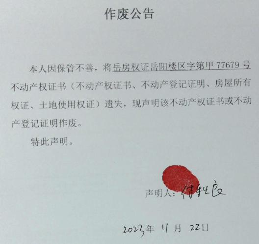 作废公告(付秋良)