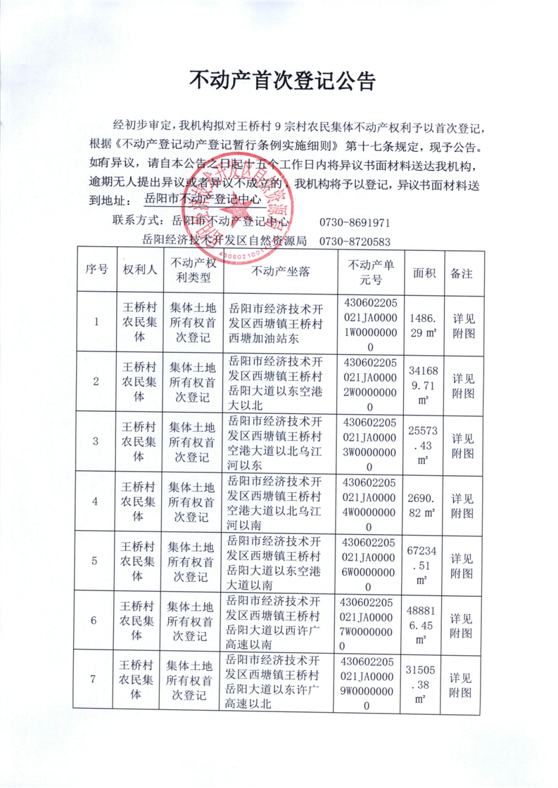不动产首次登记公告(王桥村)