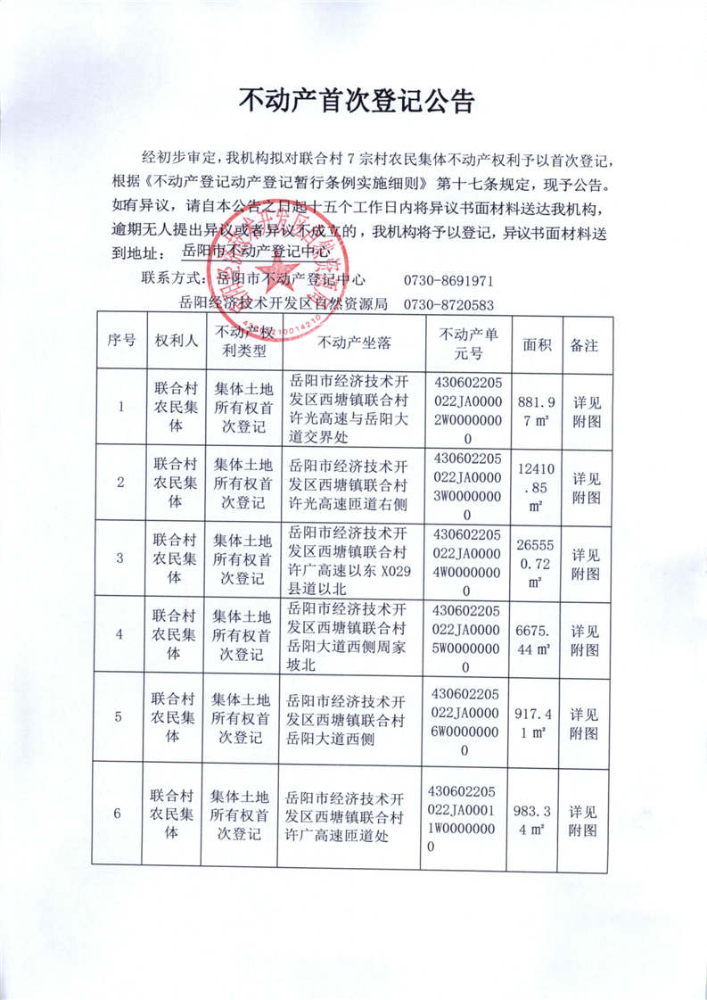 不动产首次登记公告(联合村)