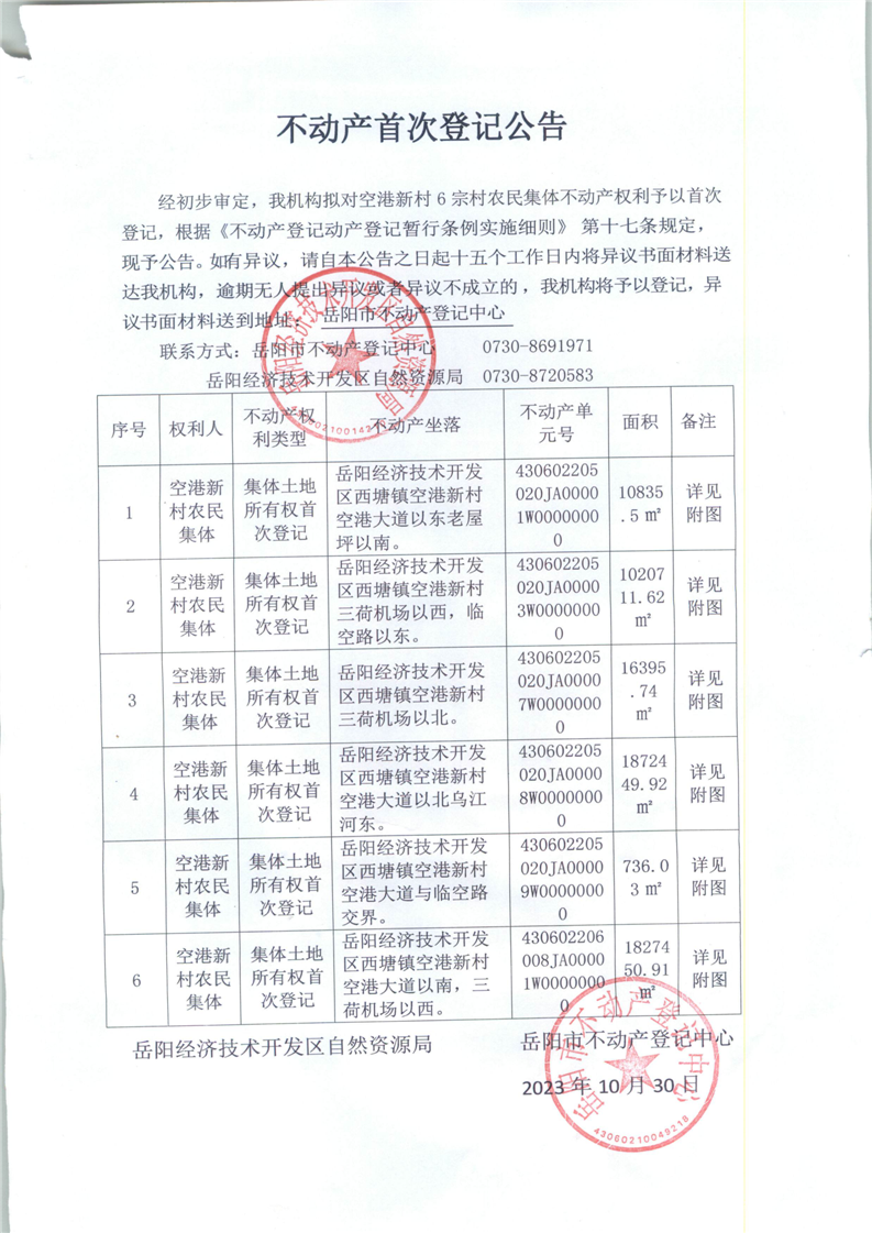 不动产首次登记公告(空港新村)