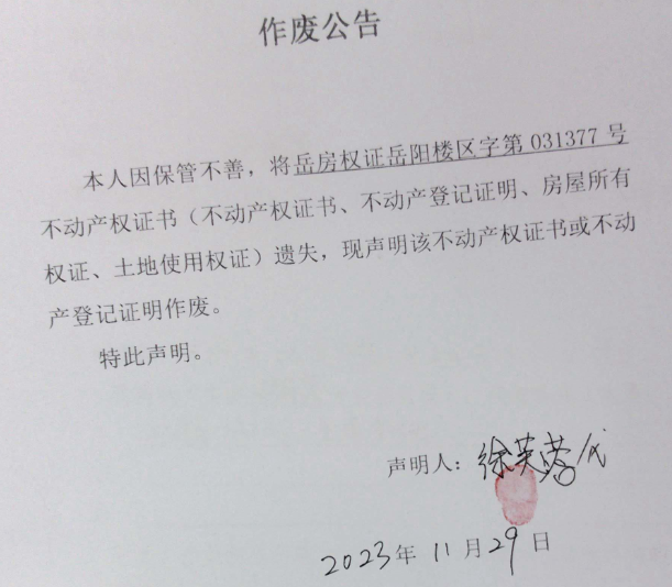 作废公告(徐新民、汪秀芳)