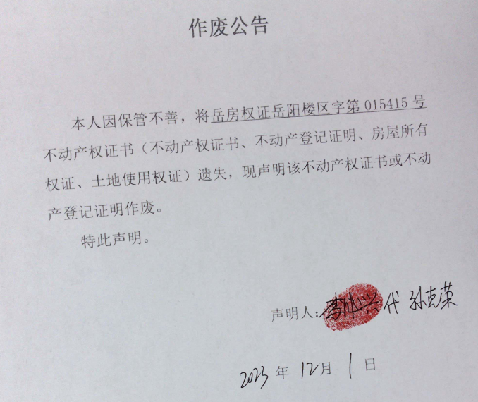 作废公告(孙克荣)