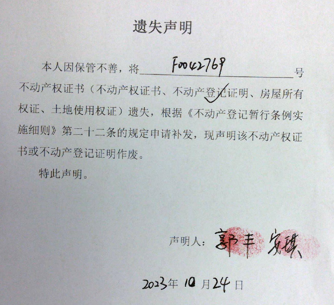 遗失公告(郭丰、安琪)