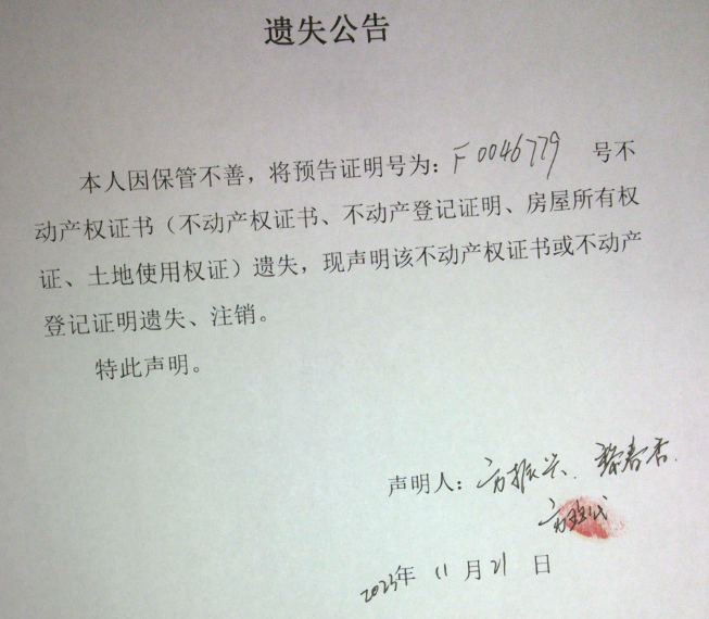 遗失公告(黎春香、方振兴)