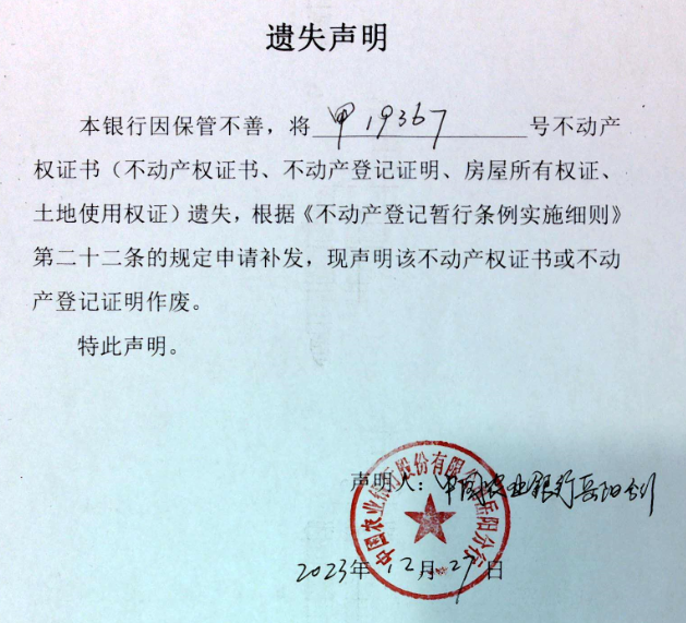 遗失声明(中国农业银行股份有限公司岳阳分行)