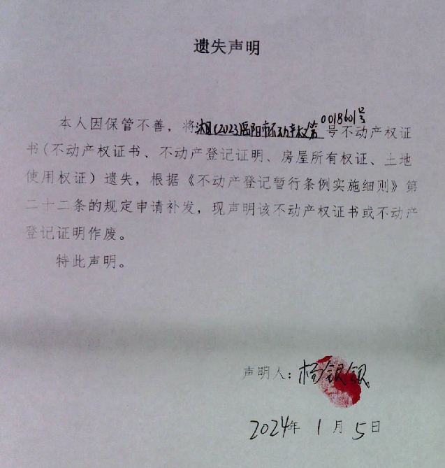 遗失声明(杨银银)