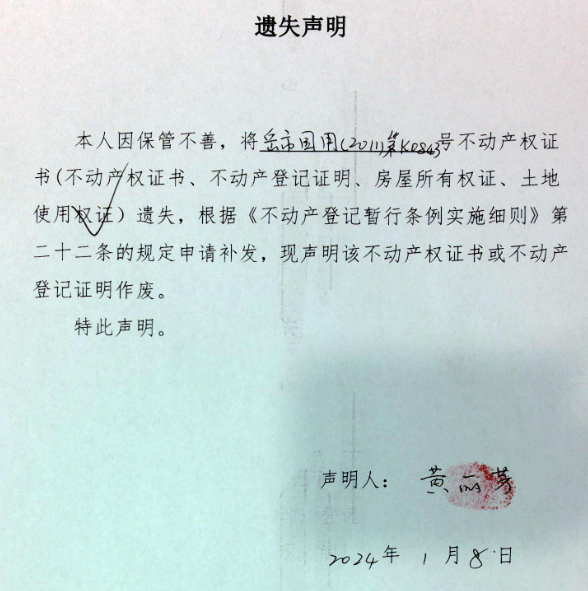 遗失声明(黄丽芳)