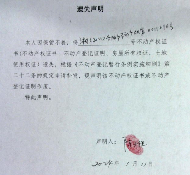 遗失声明(陈小健)