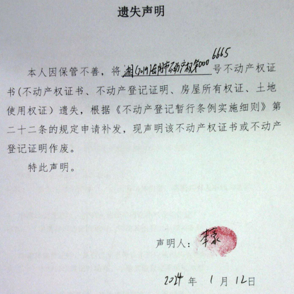 遗失声明(李豪)