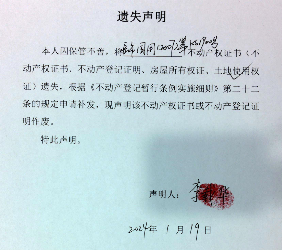 遗失声明(李载华)2