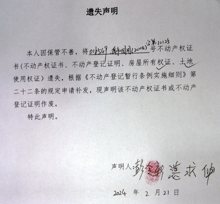 遗失声明(彭令新、湛求伸)