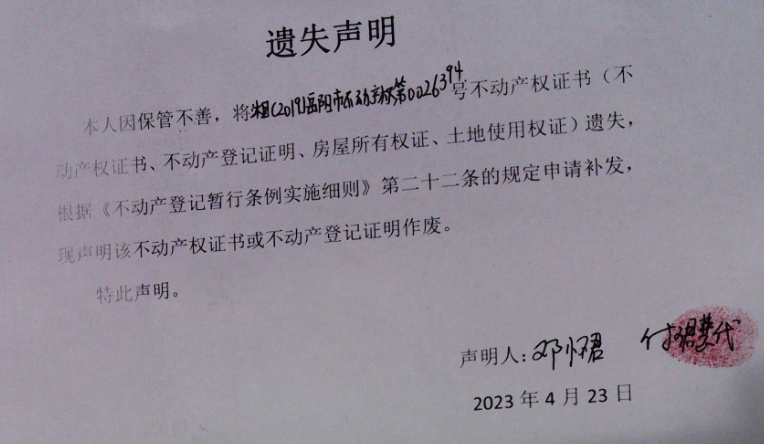 遗失声明(邓怀君)