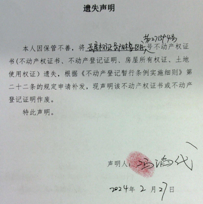 遗失声明(杨雪卿)