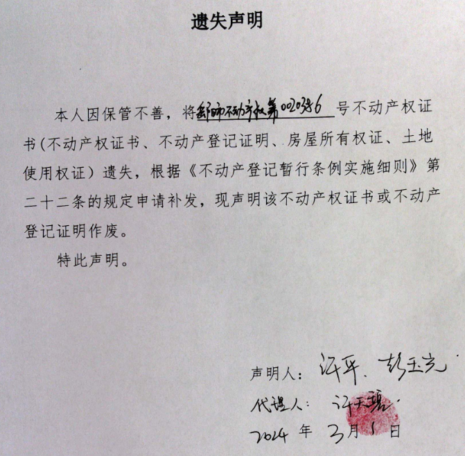 遗失声明(许平、彭玉光)