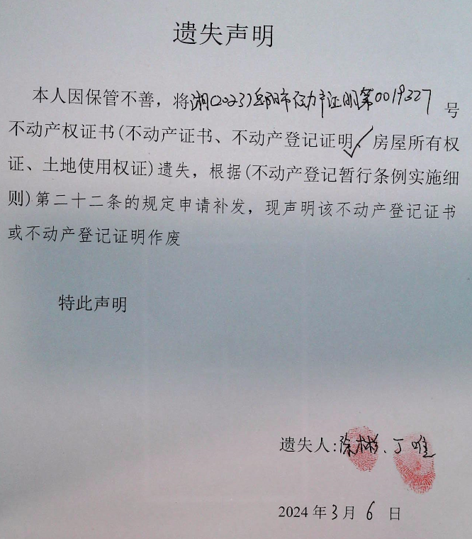 遗失声明(徐彬、丁唯)