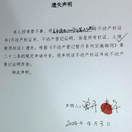 遗失声明(曾丹、寿华)2