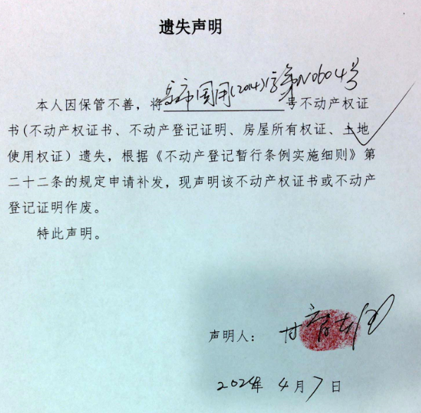 遗失声明(甘育雄)