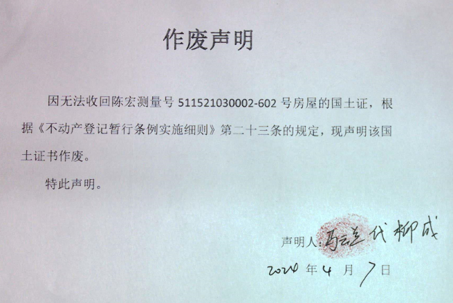 作废声明(柳成)