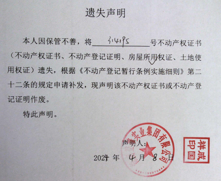 遗失声明(湖南登峰实业集团有限公司)