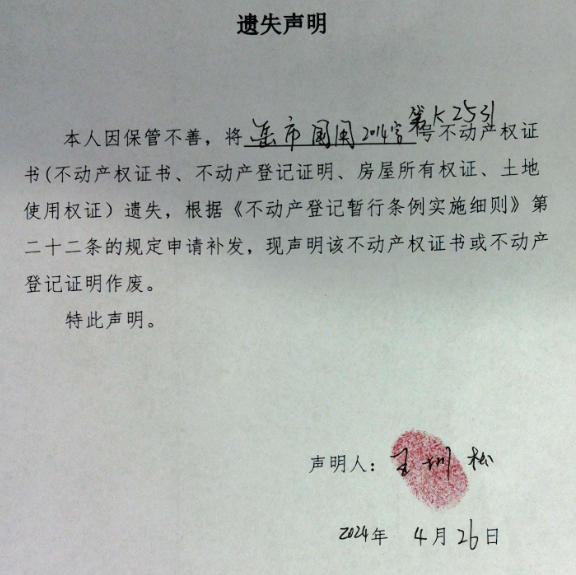 遗失声明(王圳松)
