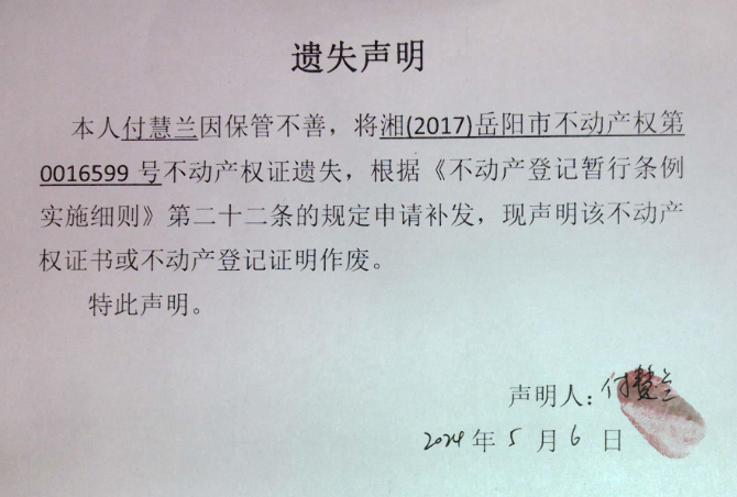 遗失声明(付慧兰)