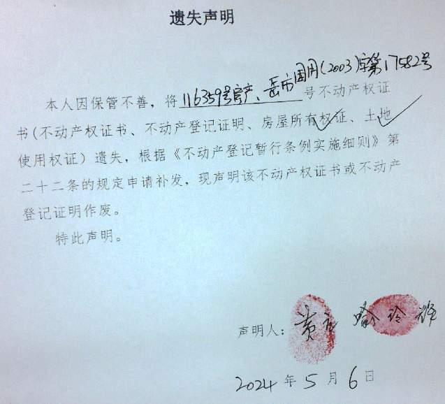 遗失声明(黄立、喻玲辉)
