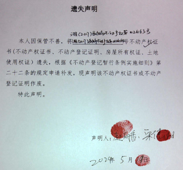 遗失声明(赵丽香、宋健湘)