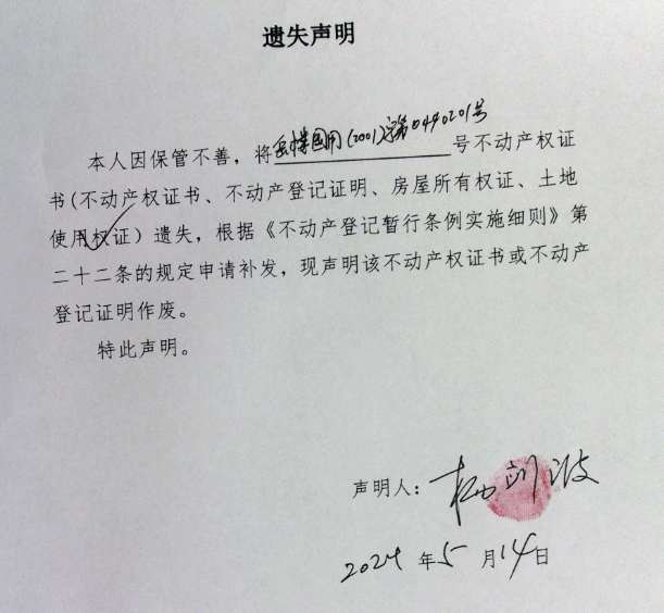 遗失声明(杨剑波 )