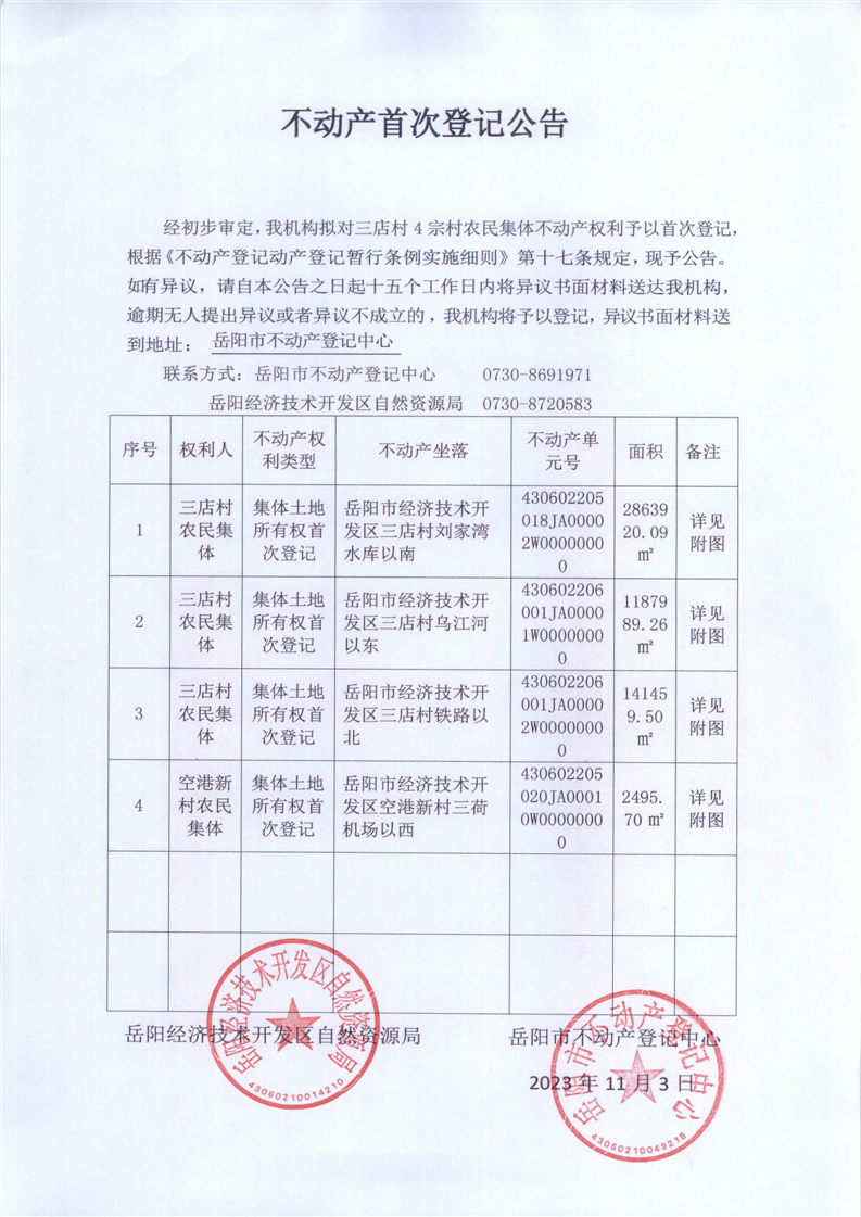 不动产首次登记公告(三店村农民集体 )