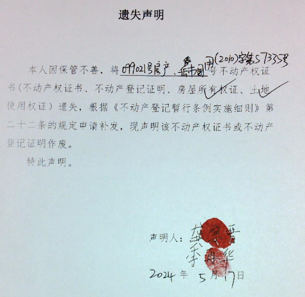 遗失声明(龚宗晋、李再华 )