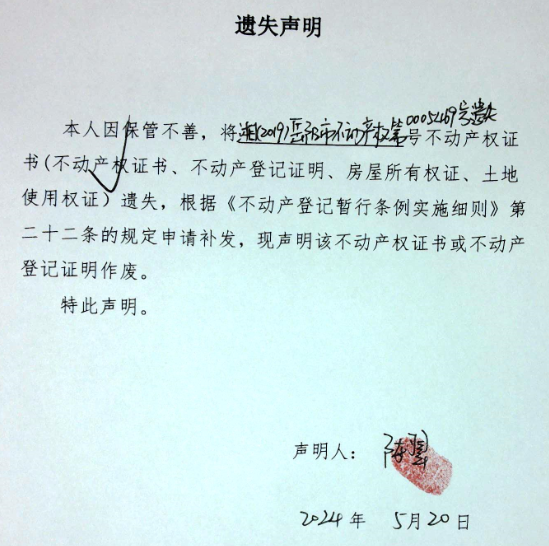 遗失声明(陈翠)