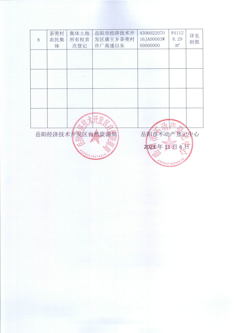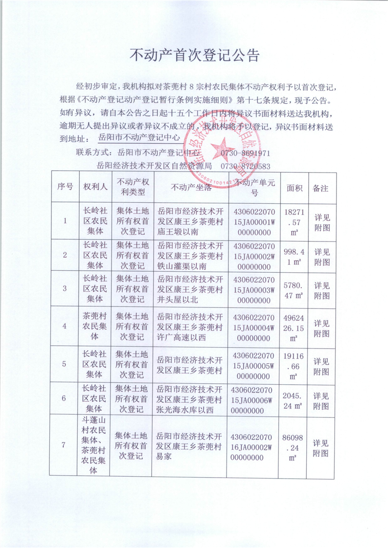 不动产首次登记公告(茶蔸村农民集体)