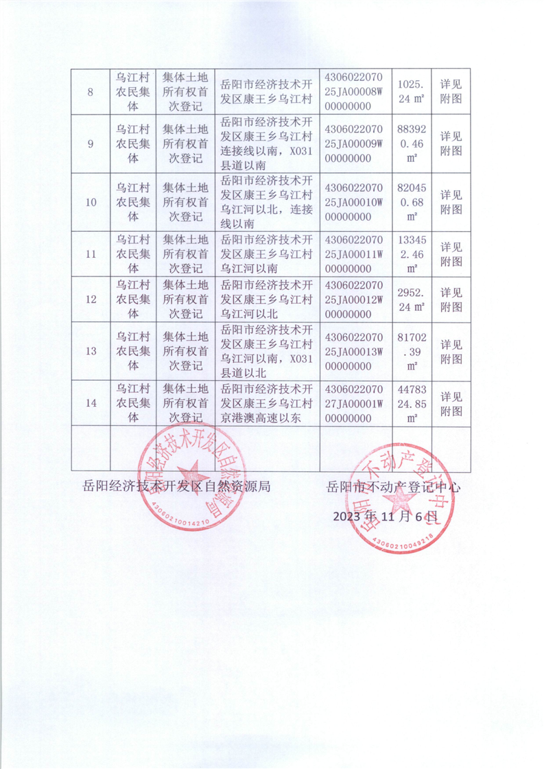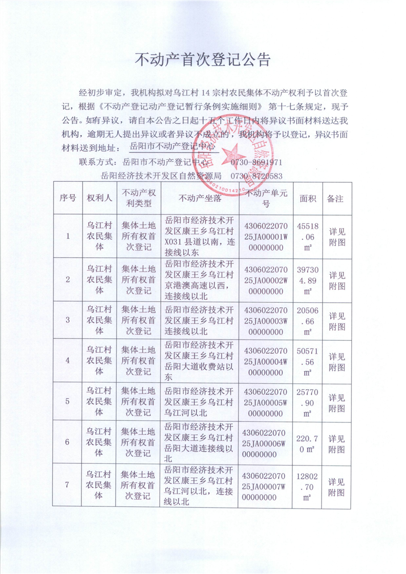 不动产首次登记公告(乌江村农民集体)