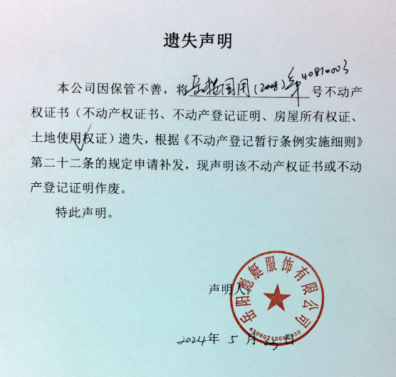 遗失声明(岳阳彪艇服饰有限公司)