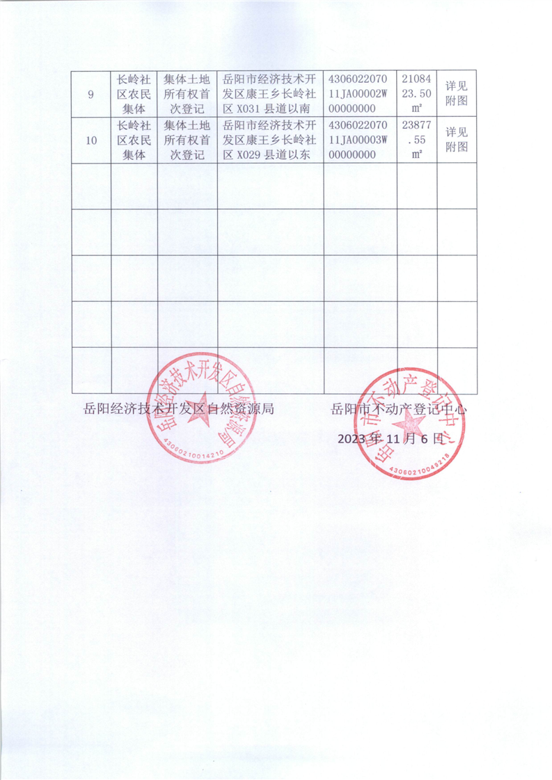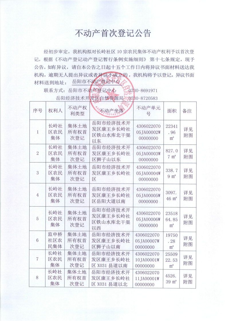 不动产首次登记公告(长岭社区农民集体)