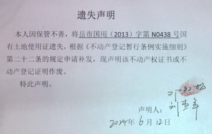 遗失声明(邓红梅、刘查年)