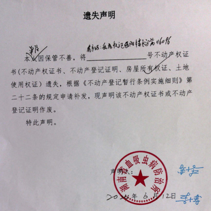 遗失声明(湖南省血吸虫病防治所)