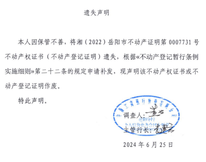 遗失声明(中国工商银行股份有限公司岳阳分行)