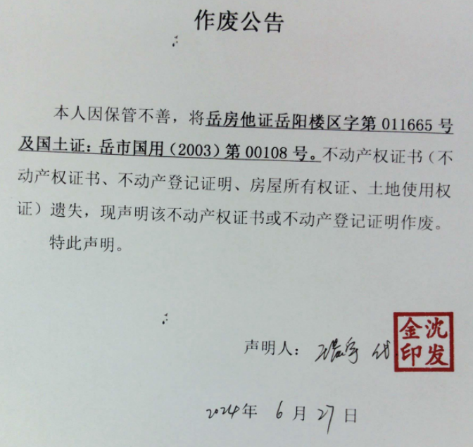 作废公告(沈发金)