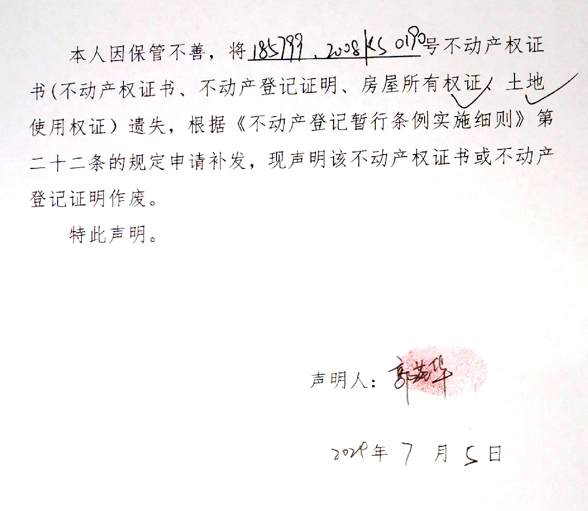 遗失声明(郭苑华)
