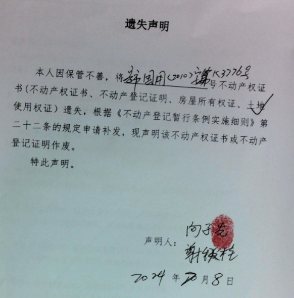 遗失声明(向于先、谢秋桂 )