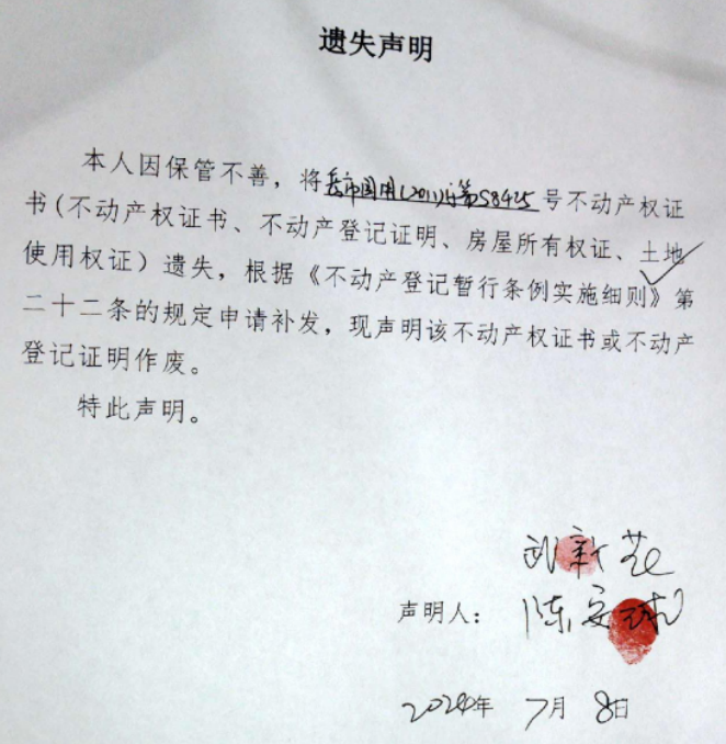 遗失声明(武新花、陈安球)