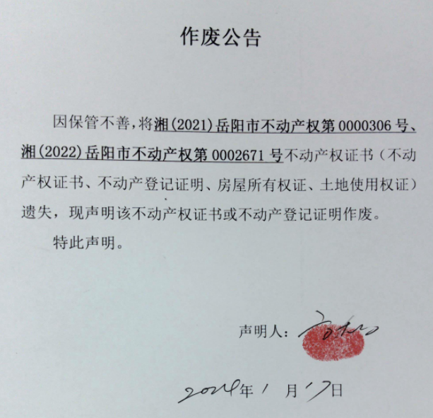 作废公告(方大为)