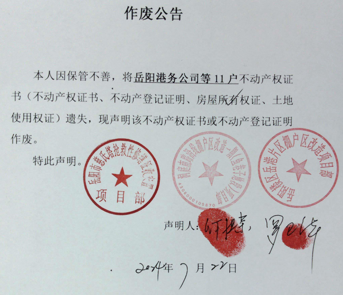 作废公告(慈氏塔项目部、岳港片区项目部、鱼巷子项目部)
