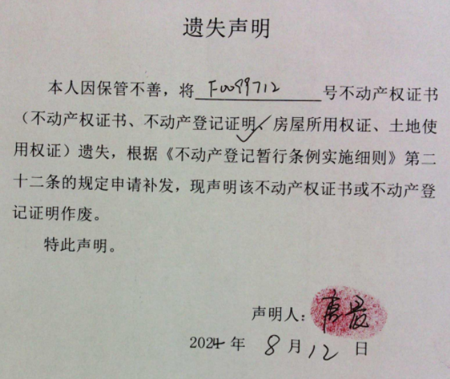 遗失声明(唐晨)