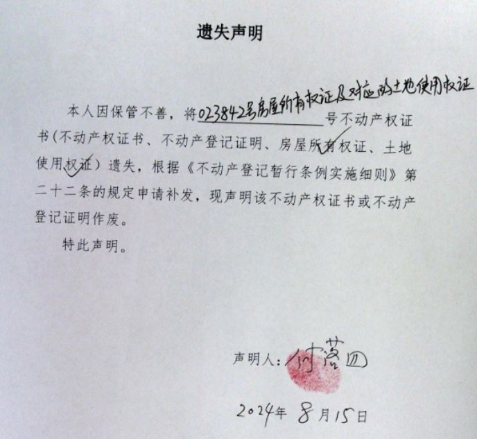 遗失声明(付落四)