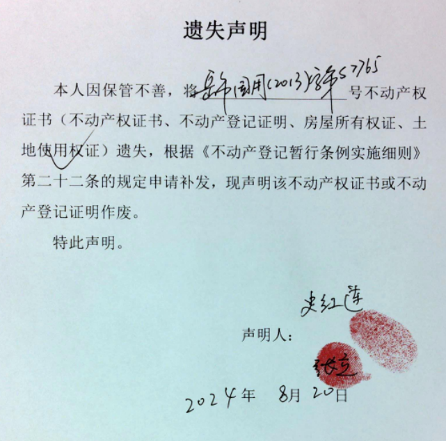 遗失声明(史红连)