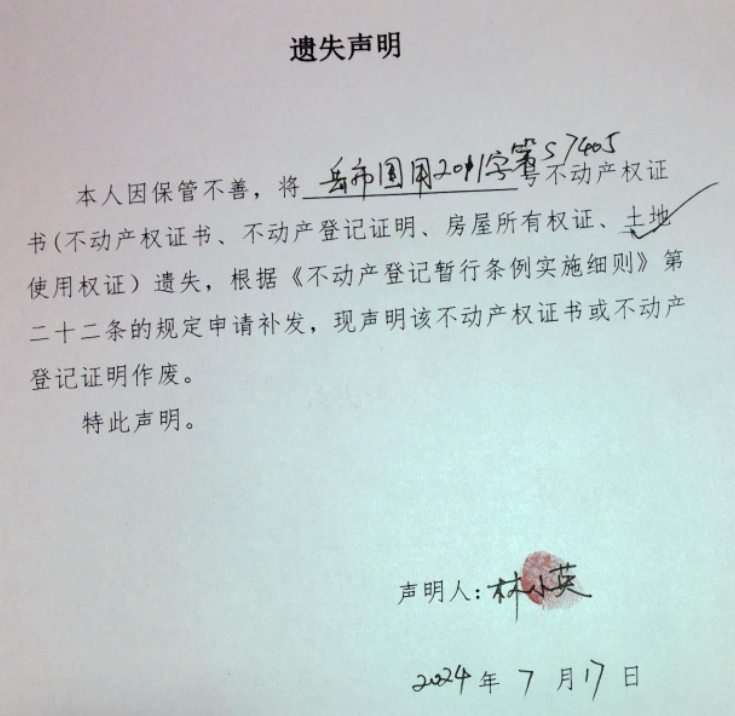 遗失声明(林小英)