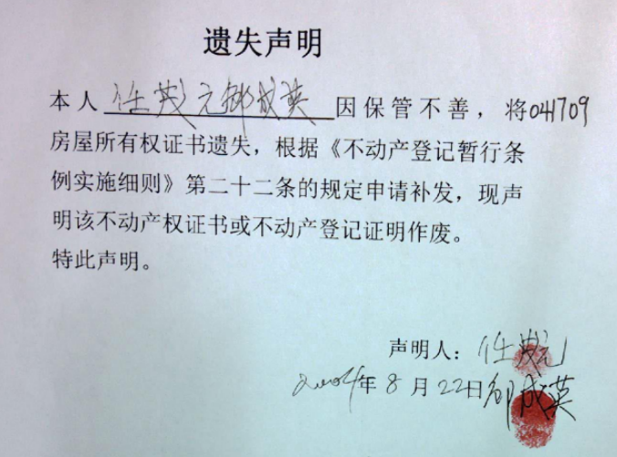 遗失声明(任茂元、邹成英)